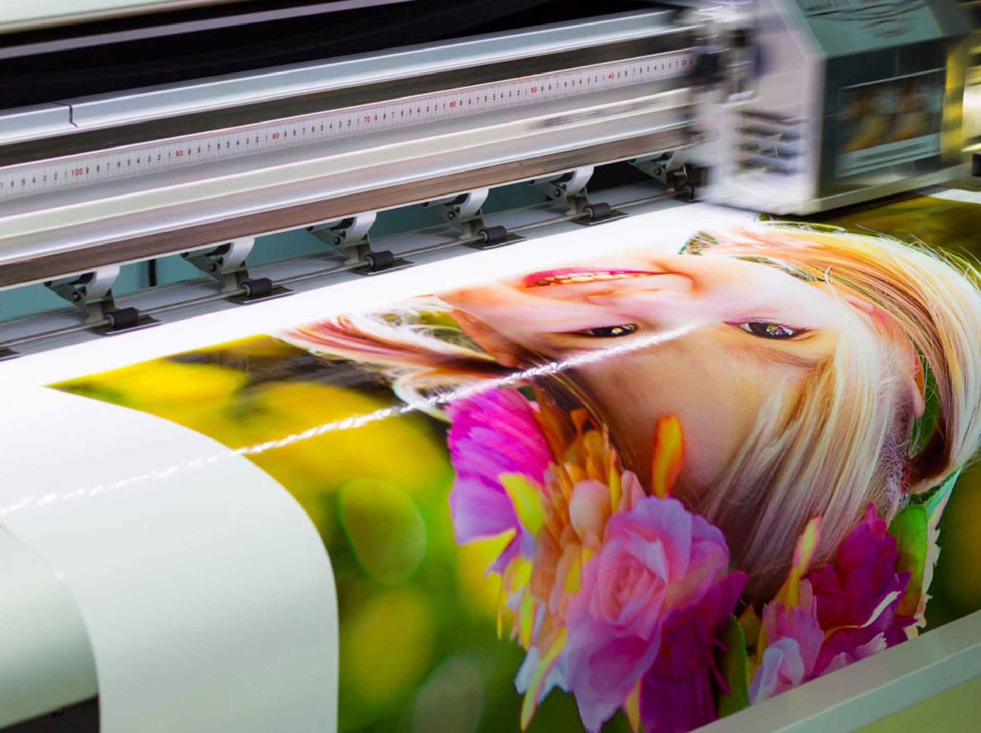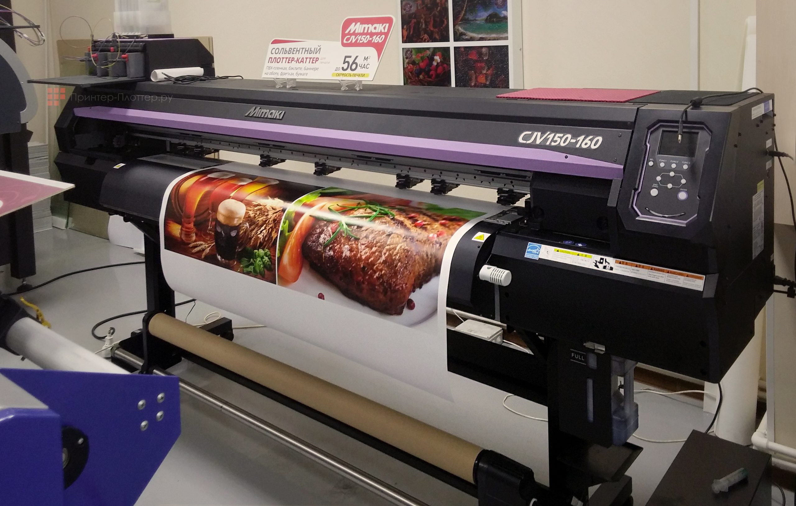 Работа осуществляется на специальных полиграфических машинах – широкоформатных плоттерах и принтерах:
